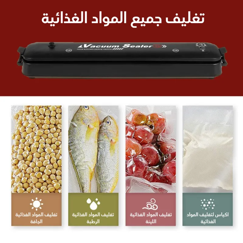 ✔️ متعدد الاستخدامات: مثالي للحفاظ على اللحوم، الدجاج، الأسماك، الخضار، الفواكه، المكسرات، البهارات، وحتى الوجبات المطهية!