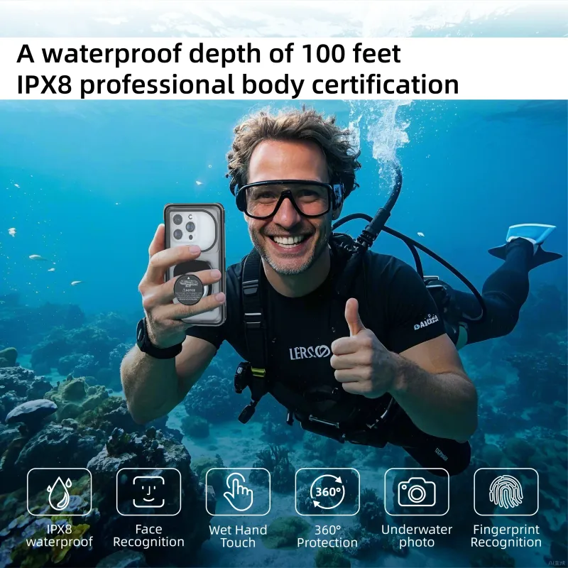 ✅ مقاوم للماء 100% – حماية محكمة تمنع تسرب المياه تمامًا، حتى أثناء السباحة أو التصوير تحت الماء.